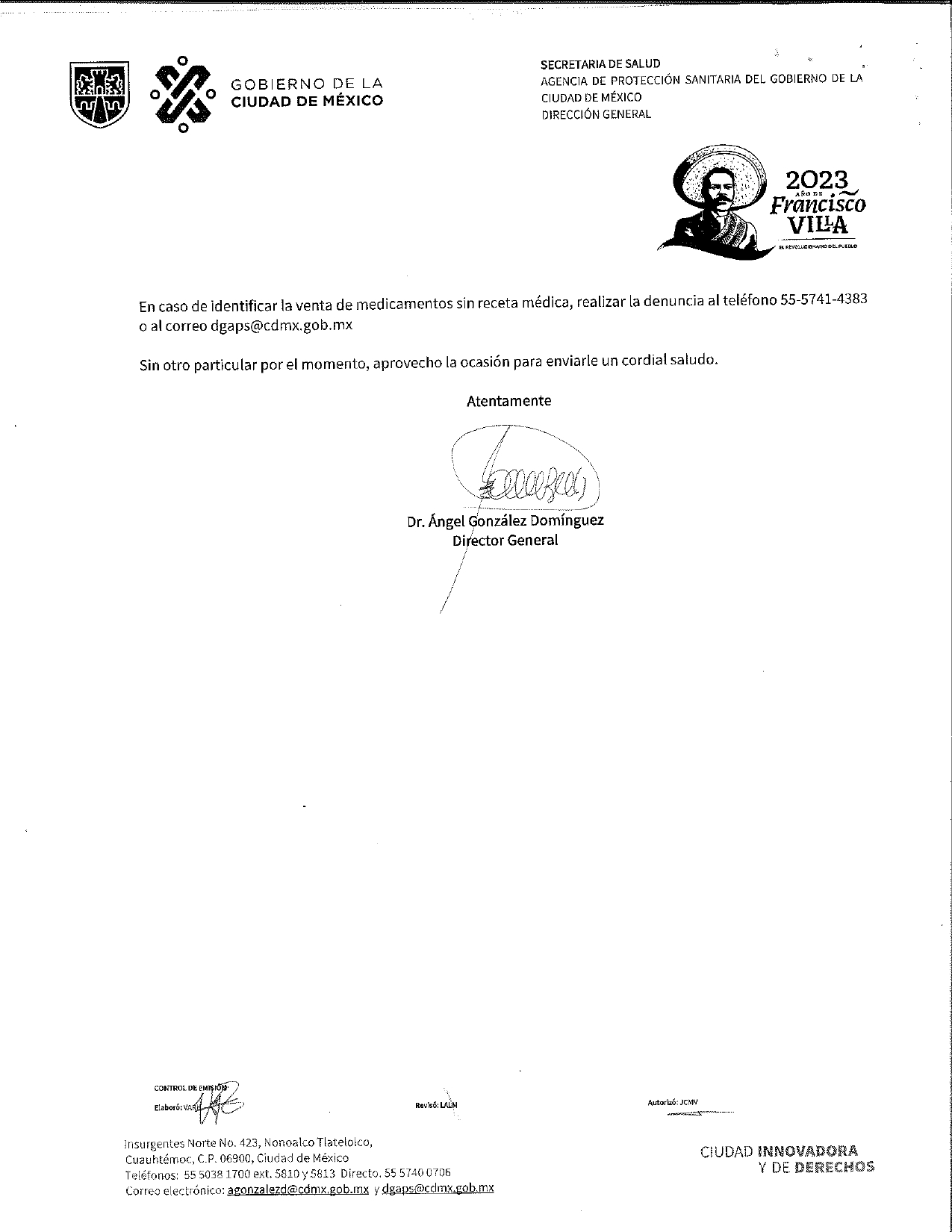 Se anexa el oficio número AGEPSA/DG/369/2023, signado por el titular de la Agencia de Protección Sanitaria del Gobierno de la Ciudad de México, mediante el cual, da a conocer los siguientes enlaces, en los cuales se podrá consultar los avisos de riesgo específicos: